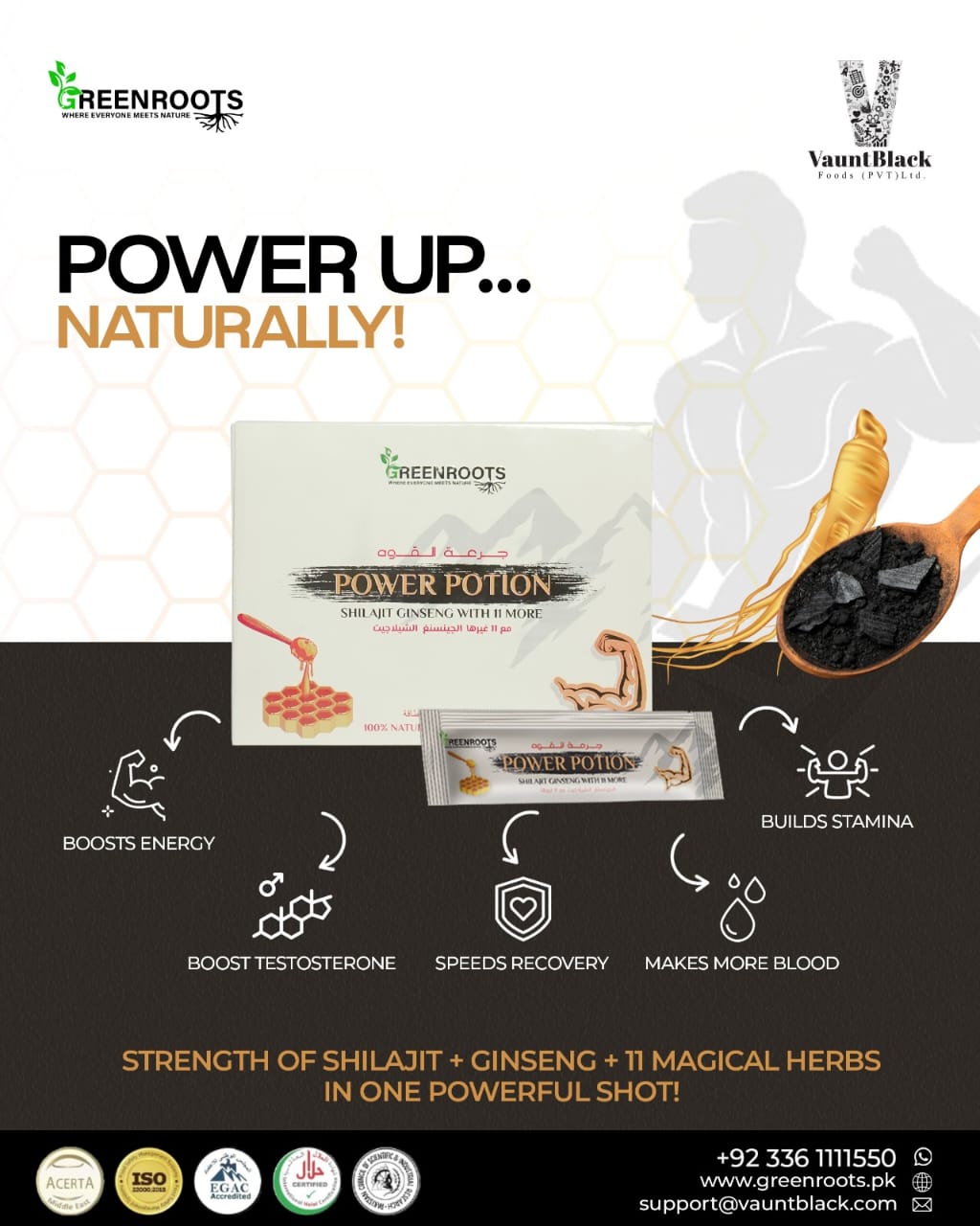 Experience the next level of performance, vitality, and confidence with Power Potion, a high-potency herbal formula developed by GreenRoots.