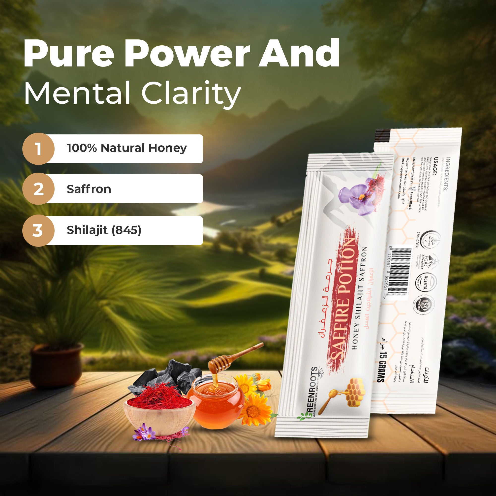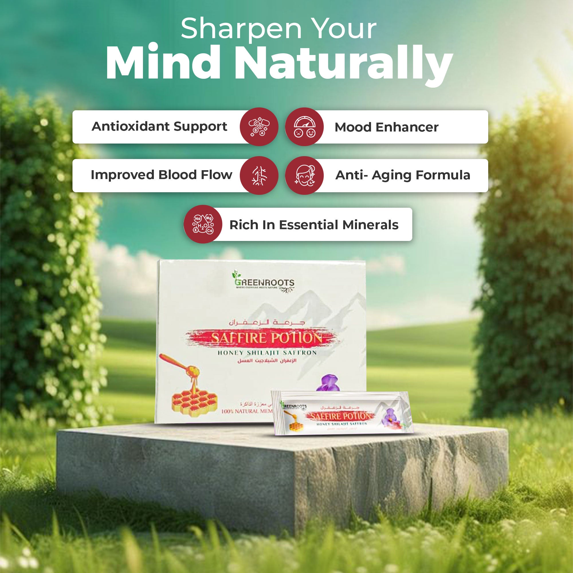 Unlock the full potential of your mind and body with Saffire Potion, a premium herbal formulation by GreenRoots — specially crafted to enhance memory, mental clarity, eyesight, and overall vitality.